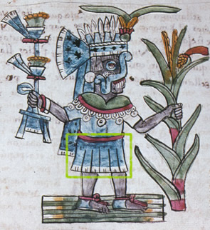 The Olmec rulers that are depicted there on sculptures wear the longer type of loincloth, supported by a wide belt, whereas altar-supported dwarfs are shown in short, apron-like genital covering held in place by narrow cords